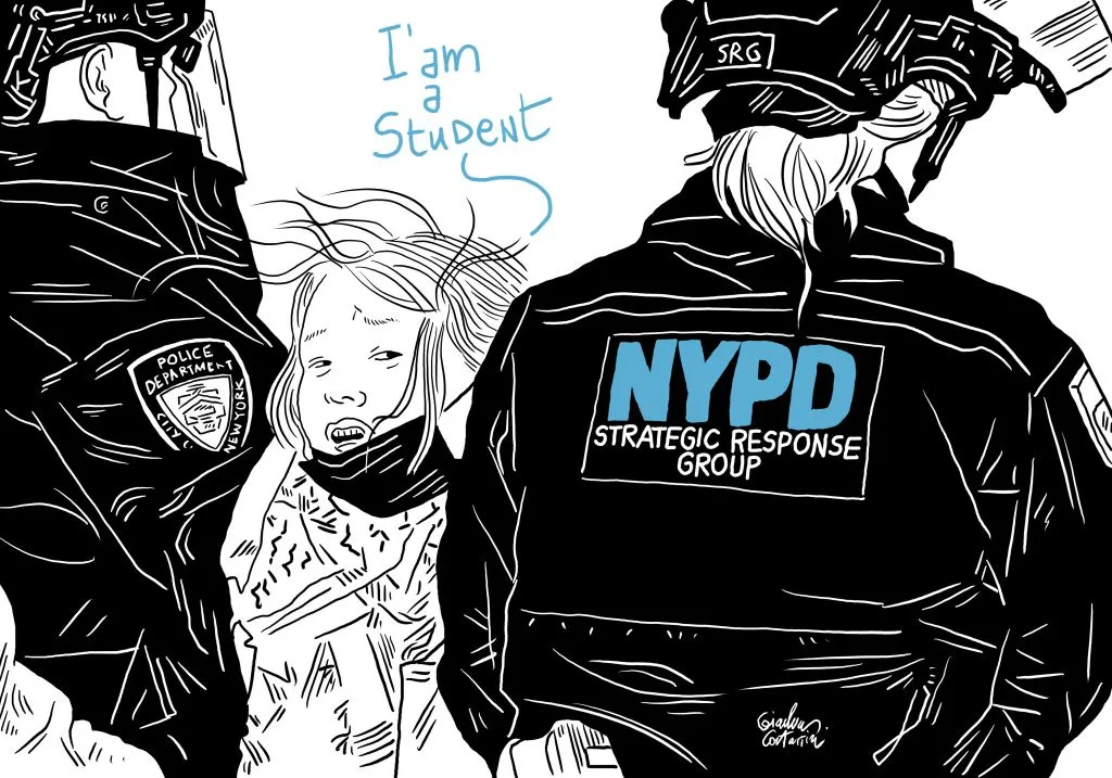 In 2024 and 2025, I closely followed solidarity demonstrations for Gaza on university campuses, particularly at Columbia University in New York. With my drawings, I sought to capture the energy and commitment of Palestinian and pro-Palestinian students, turning art into a tool of youth activism and political pressure within academic contexts. These events brought visibility to protests against the occupation and sparked international debate on the living conditions in the Gaza Strip.